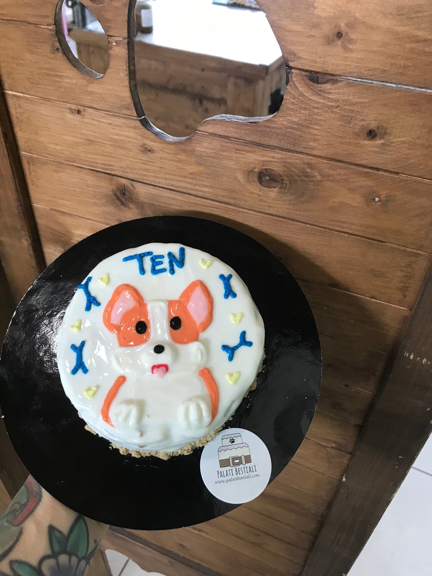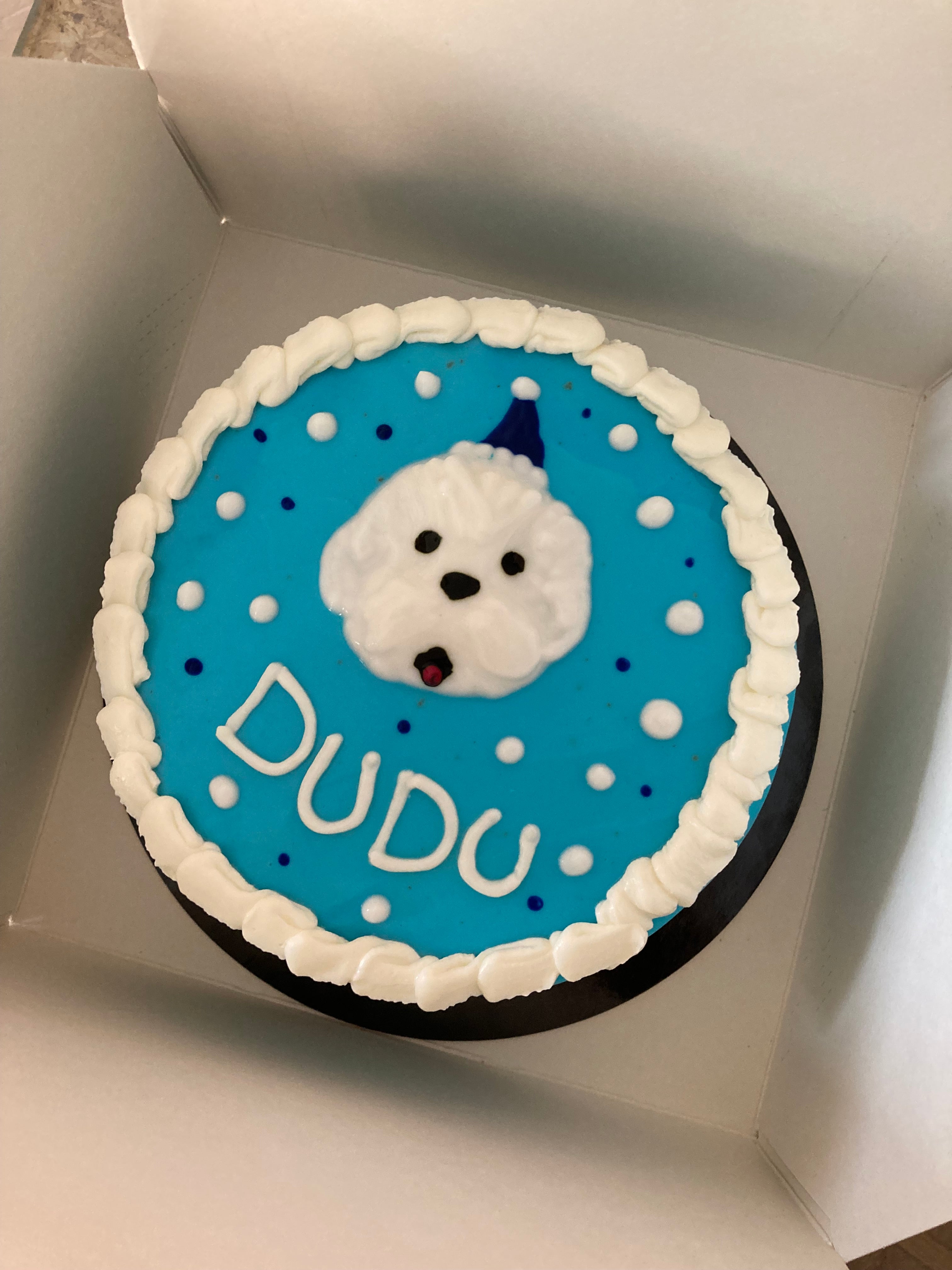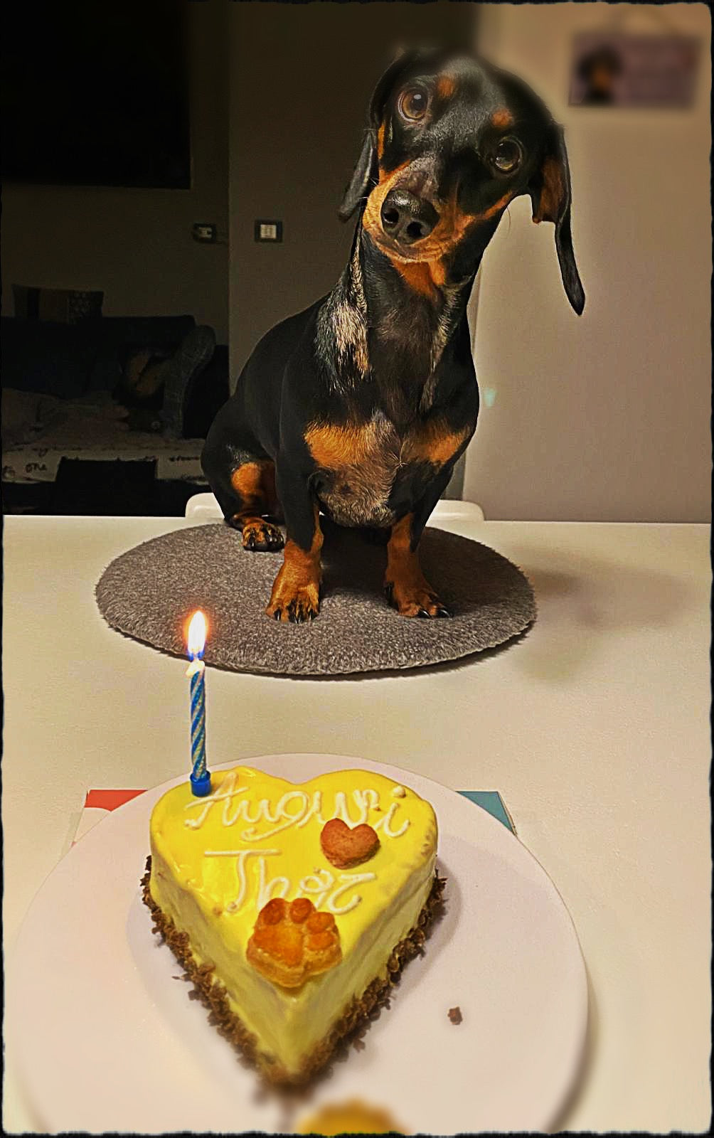 Per lui abbiamo una base di "can di spagna" allo yogurt, ricoperto di glassa sempre allo yogurt.