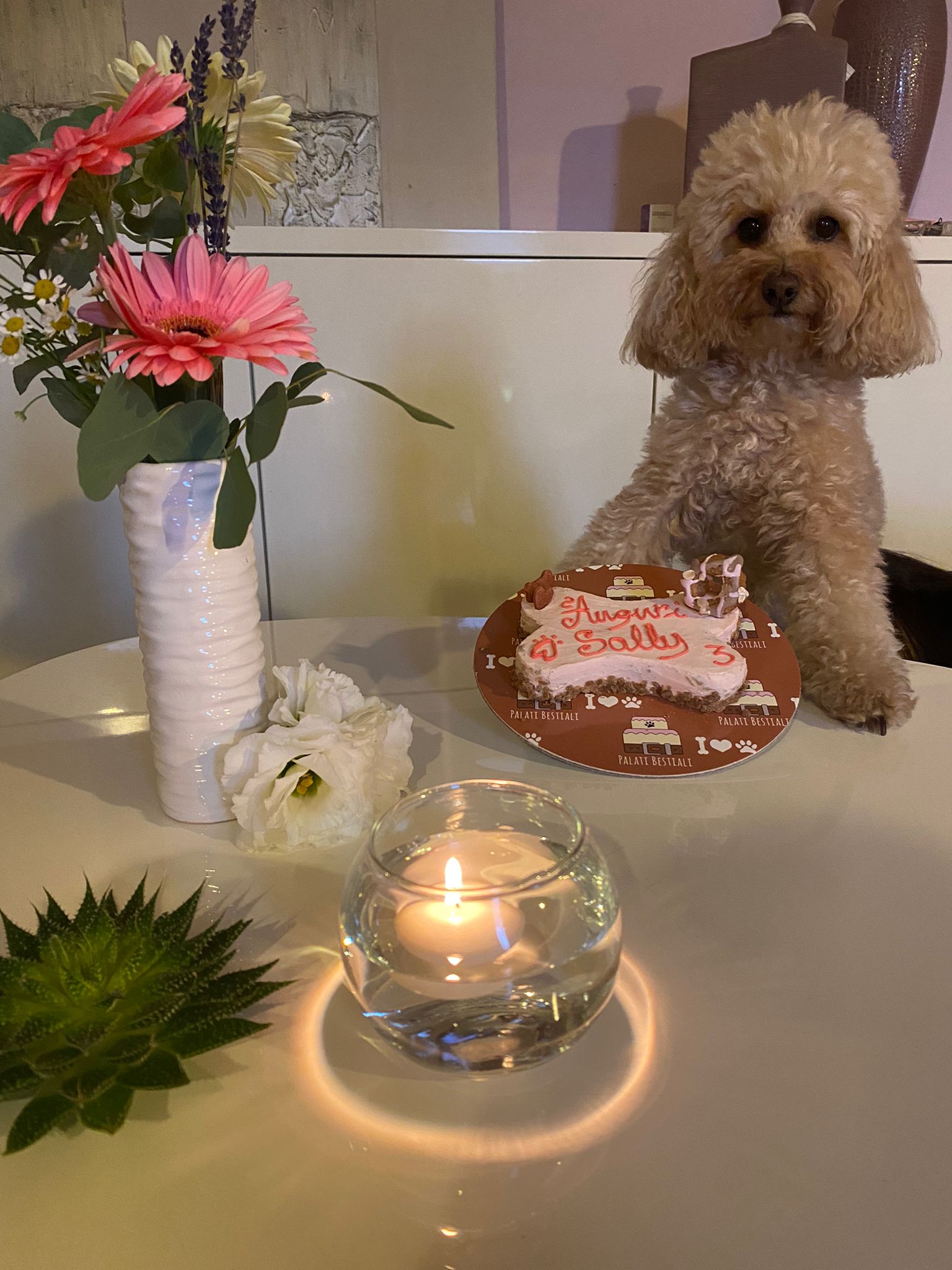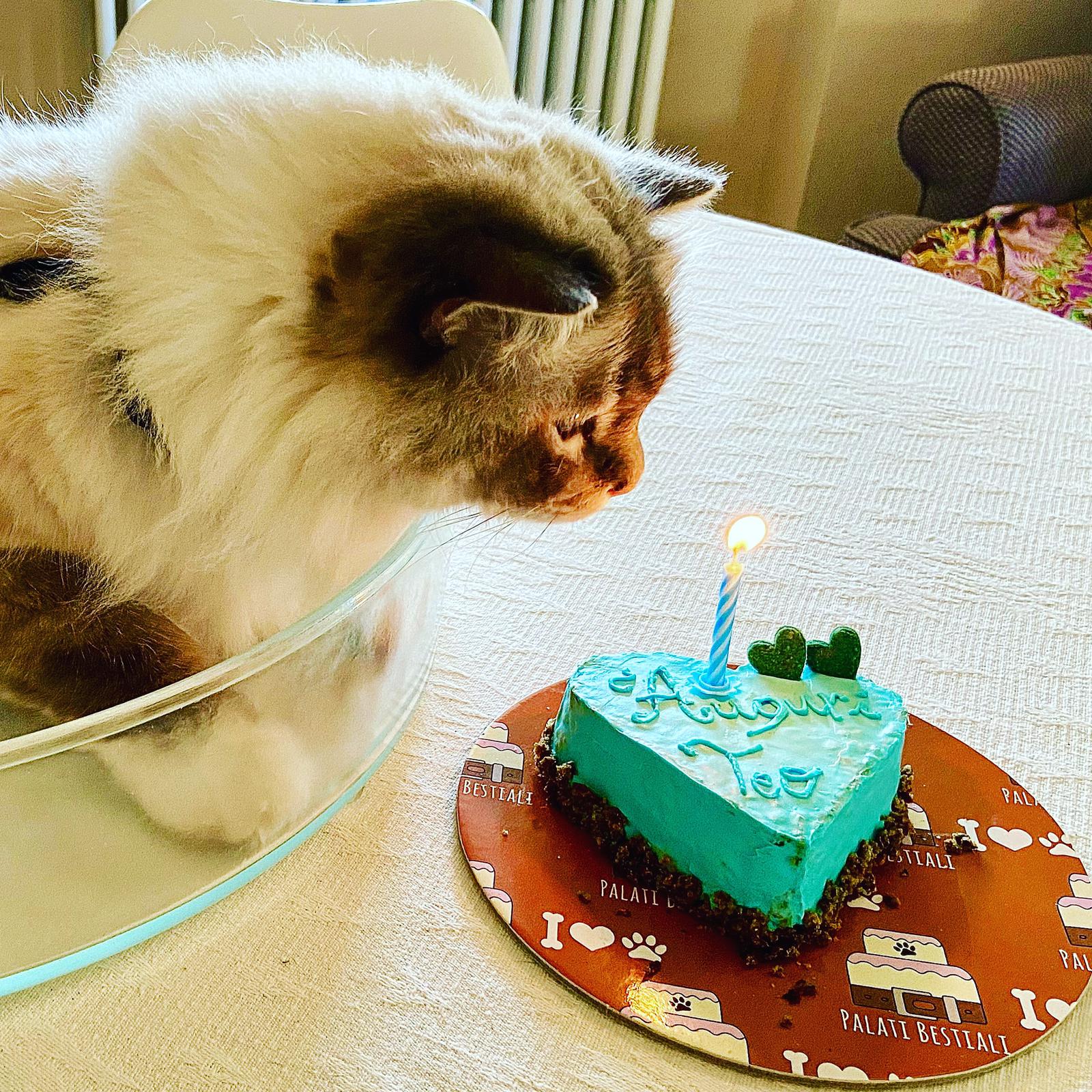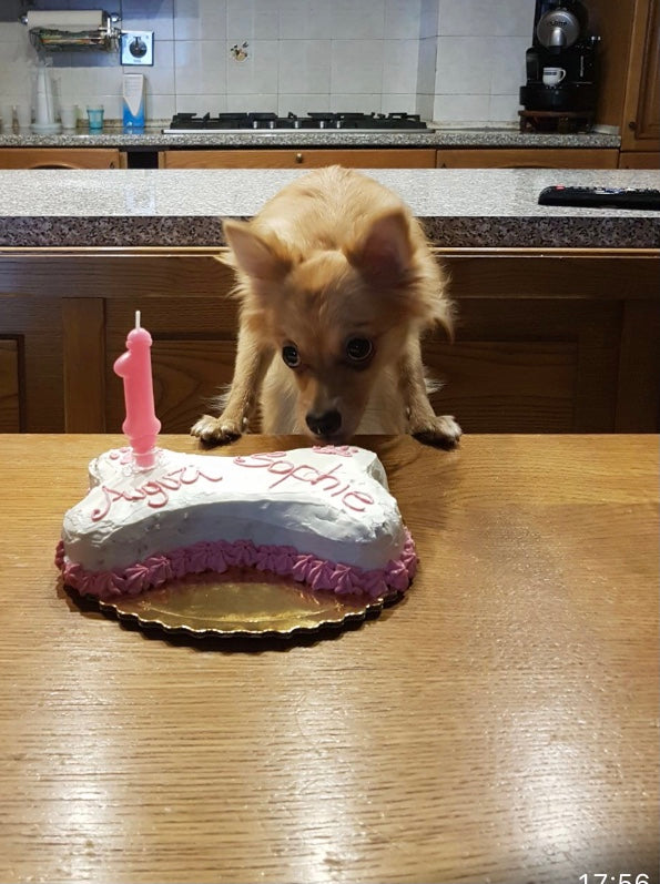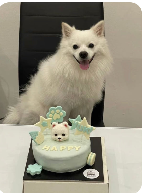 Per lui abbiamo una base di "can di spagna" allo yogurt, ricoperto di glassa sempre allo yogurt.