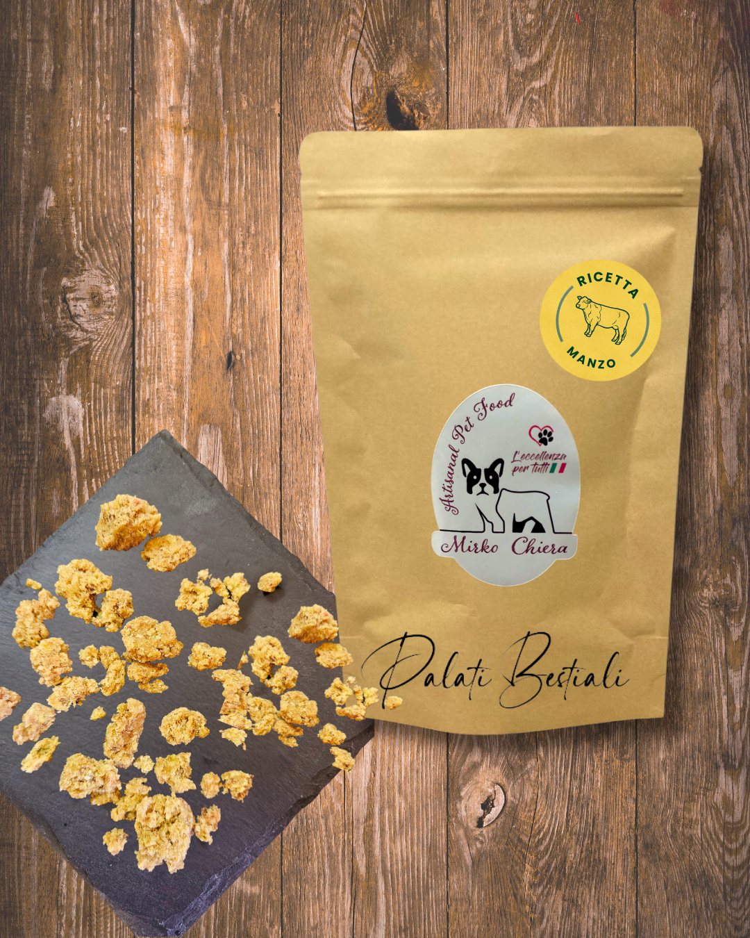 La nostra genuina e innovativa composizione artigianale al manzo è frutto di un attenta scelta delle materie prime e l'utilizzo di componenti altamente funzionali per l'organismo del cane.