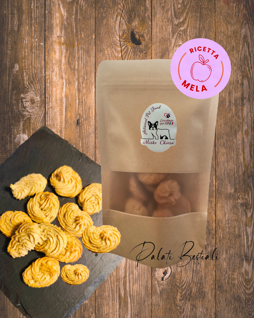 Biscottini rigorosamente fatti a mano, utilizzando solo materie prime fresche e genuine per poter donare al tuo amico a 4 zampe una merenda salutare!
