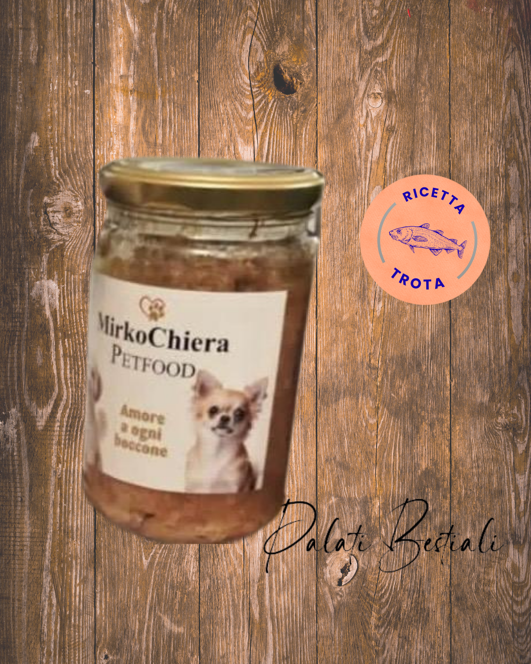 La nostra vasocottura alla Trota nasce per soddisfare tutti coloro che desiderano dare il massimo dell'eccellenza artigianale al proprio amico a 4 zampe.